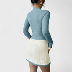 La maglia Chantel unisce eleganza minimalista e comfort quotidiano. Realizzata in tessuto morbido, elasticizzato e traspirante, si adatta perfettamente alle linee del corpo, valorizzando la silhouette con naturalezza. Le maniche lunghe e il design semplice la rendono un capo versatile, ideale da abbinare a gonne o pantaloni per un look impeccabile in ogni occasione.