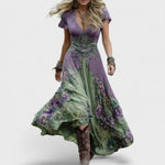 Lasciatevi conquistare dal Flora, un abito che unisce romanticismo e stile senza tempo. La scollatura a V e i dettagli ricamati esaltano la femminilità, mentre la stampa floreale dona un fascino naturale e sofisticato.