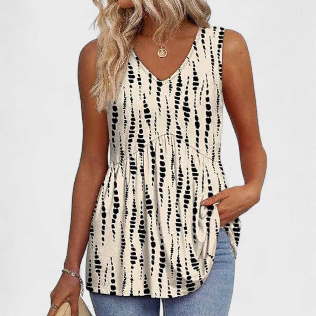 Birna è l'abbigliamento estivo perfetto, creato per mantenerti fresca, comoda ed elegante in ogni momento. Con il suo tessuto traspirante e la vestibilità morbida, questo top cade magnificamente senza aderire al corpo. Il design senza maniche e la silhouette ariosa seguono i movimenti del tuo corpo. Che tu sia fuori per la giornata o in viaggio verso l'ufficio, Birna offre un fascino senza tempo e una vestibilità quotidiana in un unico capo elegante.