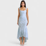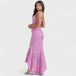 L'abito lungo Carisia incarna l'eleganza senza tempo con la sua delicata struttura in pizzo e la vestibilità che esalta la silhouette. Perfetto per matrimoni, feste in giardino o qualsiasi momento che richieda raffinatezza e delicatezza.