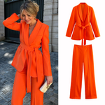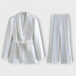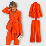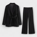 Scopri lo stile e il comfort definitivi con il nostro set Lena per donne. Questo set a due pezzi è composto da una giacca lunga con cintura che evidenzia la vita e pantaloni aderenti – ideale per occasioni formali e casual. Realizzato con materiali di alta qualità che garantiscono traspirabilità e comfort, sia che tu sia in ufficio o a cena.