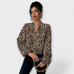 Aggiungi un po' di audacia al tuo guardaroba con questa blusa a stampa leopardata. Progettata con scollatura a V e maniche lunghe, questa blusa unisce eleganza e comfort. La vita elasticizzata garantisce una vestibilità perfetta, esaltando la silhouette. Che tu stia andando a una festa, al lavoro o a un incontro con amici, questa blusa sarà una scelta eccellente.
