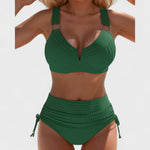 Dai al tuo look da spiaggia un tocco di femminilità e grinta con questo bikini dal taglio accattivante con slip a vita alta. La combinazione di linee eleganti, vestibilità aderente e dettagli raffinati ti farà sentire non solo bella, ma anche sicura di te, sia che tu sia a bordo piscina o che stia passeggiando sulla spiaggia.