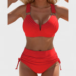Questo bikini è stato progettato pensando al comfort e allo stile. Il top offre un buon sostegno e una buona vestibilità, mentre gli slip a vita alta accentuano il punto vita e creano una silhouette slanciata. Il tessuto a coste aggiunge quel tocco in più di struttura e classe al look.
