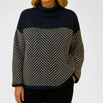 Questo maglione presenta un motivo a zigzag accattivante che aggiunge un tocco unico ai tuoi outfit invernali. Abbinalo ai tuoi pantaloni o alla tua gonna preferita per un look chic e raffinato che trasmette sofisticatezza. Con il suo collo alto che ti tiene al caldo e le spalle scese per un taglio casual, si abbina bene sia a pantaloni che a gonne. Aggiorna il tuo guardaroba autunnale e fai una forte impressione ovunque tu vada.