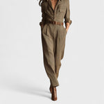 La tuta Novine è la perfetta combinazione tra comfort e raffinatezza. Con il suo taglio fluido e la cintura che valorizza la vita, dona una silhouette femminile e sofisticata, ideale per ogni occasione, dal lavoro a una serata speciale.