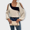 Scopri l'eleganza moderna con Scarlett – una blusa dal design a blocchi di colore, che unisce stile contemporaneo e fascino senza tempo.