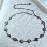 Aggiungi un tocco di fascino vintage al tuo look con la Cintura Geometrica Retro Raegan. Ispirata a forme geometriche classiche, questo accessorio è progettato per esaltare la tua silhouette e aggiungere dettagli eleganti a qualsiasi outfit. Indossata sopra abiti o sovrapposta a look casual, conferisce una finitura audace ma elegante.