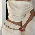 La Cintura Geometrica Retro Raegan è la fusione perfetta di design audace ed eleganza senza tempo. Un accessorio distintivo che trasforma senza sforzo qualsiasi ensemble in qualcosa di speciale.
