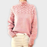 Il maglione da donna a treccia combina eleganza senza tempo con il massimo comfort. Il suo design a treccia testurizzato lo rende un vero colpo d'occhio – perfetto per l'uso quotidiano, l'ufficio o momenti di relax. Il collo alto confortevole e le maniche lunghe offrono calore accogliente, mentre il taglio ampio garantisce una piacevole libertà di movimento.