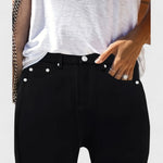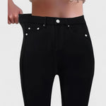 • Denim nero di alta qualità che mantiene la forma e dona un effetto snellente.
