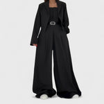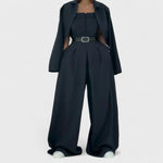 Caratterizzato da pantaloni a gamba larga ultra-trendy, da un bustier strutturato e da una giacca fluida abbinata, è progettato per accentuare tutte le silhouette.