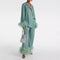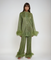 Questo elegante ensemble, caratterizzato da una maglietta a maniche lunghe con un collo adornato di piume e pantaloni a vestibilità rilassata, combina dettagli di design esclusivi con il massimo comfort. Perfetto per le stagioni autunnali e invernali, questo outfit emana stile e versatilità.