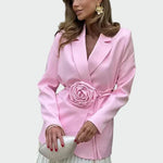 Una giacca romantica ed elegante che si distingue grazie alla cintura a forma di rosa, donando femminilità e uno stile senza tempo. Il taglio sartoriale valorizza la silhouette, mentre i dettagli della giacca la rendono ideale per occasioni speciali e look chic. Si abbina perfettamente sia con una gonna che con pantaloni per un outfit che cattura gli sguardi.