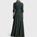 L’abito lungo Lange con revers a quadri verdi è la perfetta fusione tra fascino vintage e stile contemporaneo. Realizzato in un tessuto morbido e traspirante, valorizza la figura con una silhouette fluida e confortevole. I dettagli a quadri verdi donano un’eleganza naturale e rilassata, mentre il colletto revers aggiunge un tocco sofisticato che lo rende ideale sia per il giorno che per la sera.