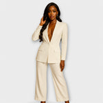 Entra nel mondo dell'eleganza e del raffinatezza con questo stile completo da donna – ideale per le donne moderne che apprezzano la moda e la versatilità. Con una giacca aderente e pantaloni eleganti, questo outfit unisce design alla moda e attrattiva senza tempo.