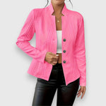 La giacca Liana combina eleganza e leggerezza, rendendola la scelta perfetta per la primavera. Il suo design stiloso e monocolore e la fine texture offrono un aspetto raffinato, mentre il piacevole mix di materiali garantisce un comfort di indossamento ottimale. La chiusura con bottoni a un solo fila conferisce alla giacca un tocco classico e la rende facilmente abbinabile.
